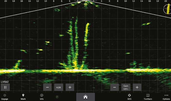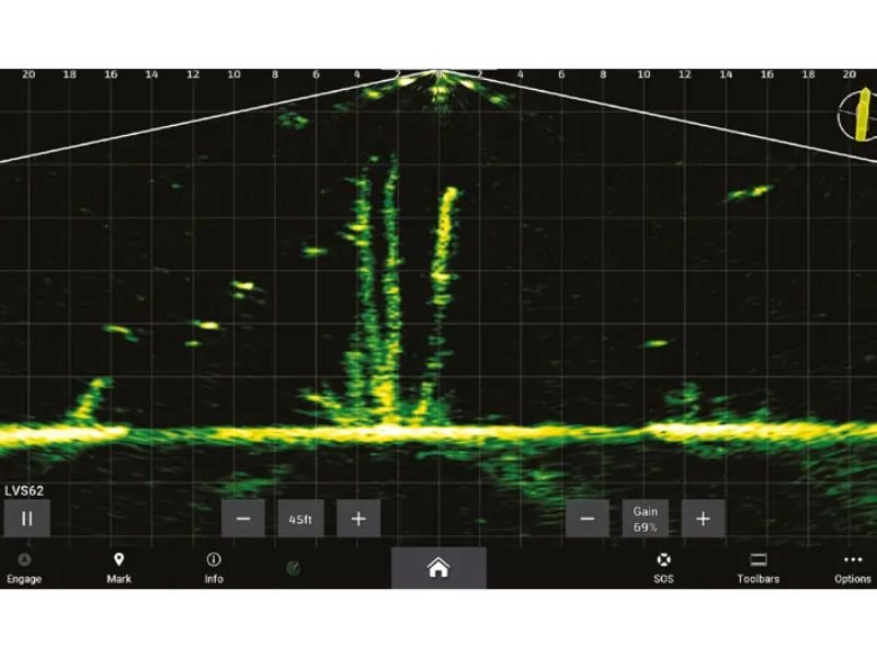 Com suporte para visualização nos modos Forward, Down e Perspective, agora é mais fácil do que nunca ver a estrutura, a isca e os peixes ao redor do seu barco em tempo real.