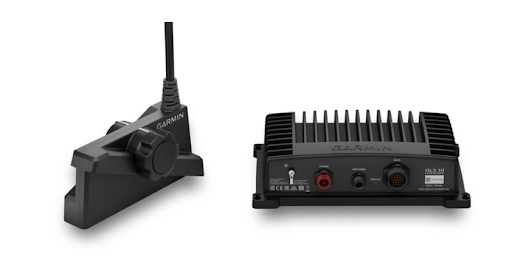Inclui um módulo de sonar (black box) GLS™ 10 compacto, com transducer LVS34 e um conector Garmin Marine Network plug-and-play para fácil instalação e integração perfeita com seu chartplotter Garmin compatível¹.