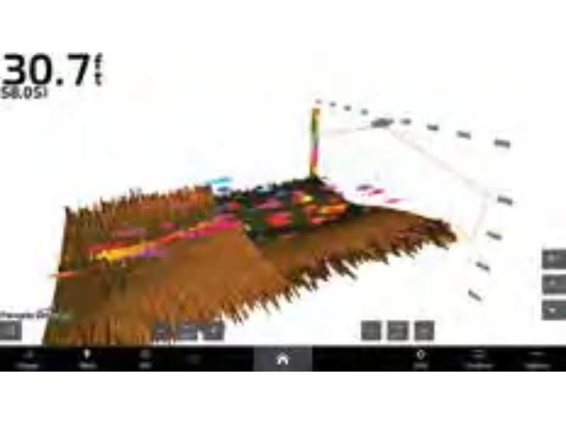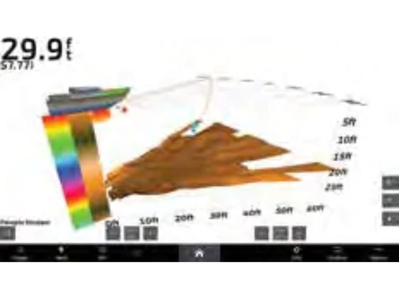 Escaneia abaixo do barco – da frente para trás e de lado a lado – para construir uma visão 3D completa da área sob o barco, permitindo que você veja mudanças de contorno, peixes e estrutura, mesmo quando parado.