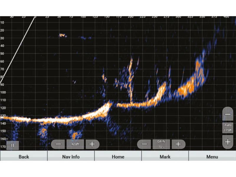 Visualize imagens de sonar de varredura ao vivo, fáceis de interpretar, além de estruturas e peixes nadando com detalhes incríveis abaixo do seu barco.