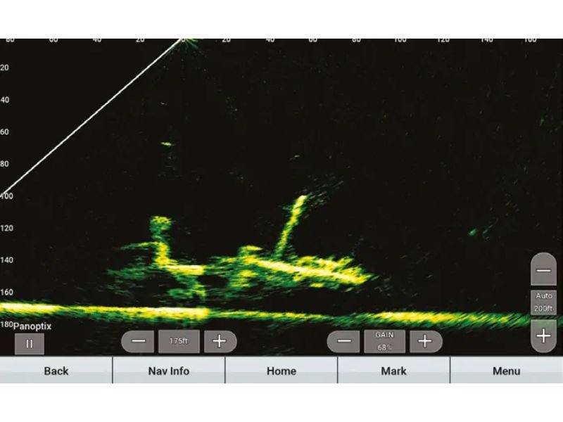 Explore à frente de seu barco para ver o que está acontecendo em tempo real, escaneando imagens de sonar de estruturas e peixes, até 200 pés de distância.