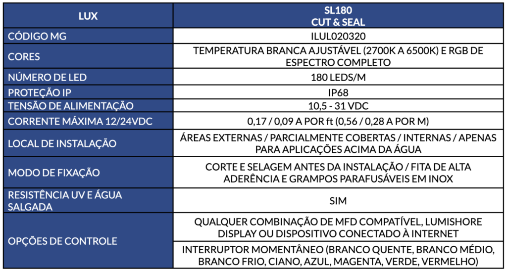 Combine o seu estilo com o sistema LUX de iluminação inteligente CRGBW da Lumishore. Crie e controle a atmosfera perfeita a bordo para qualquer ocasião - tudo ao seu alcance. E com acabamentos e materiais da mais alta qualidade, nada se parece com a linha LUX. Adequado para qualquer tamanho de barco de lazer