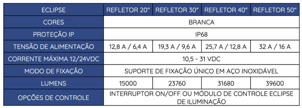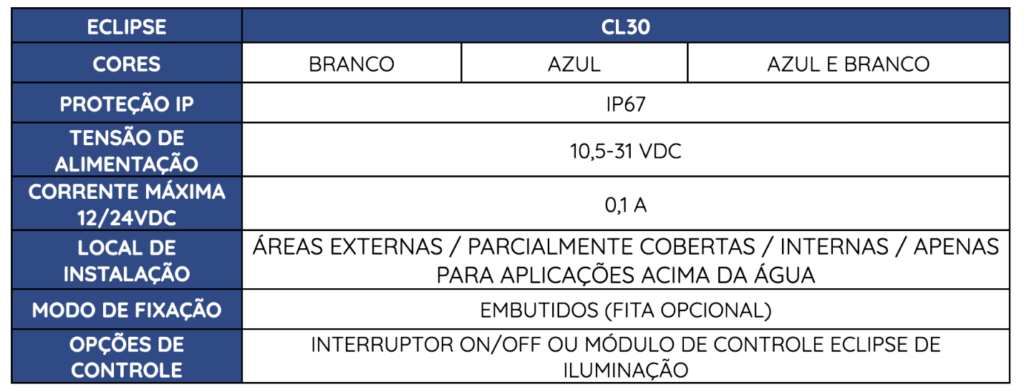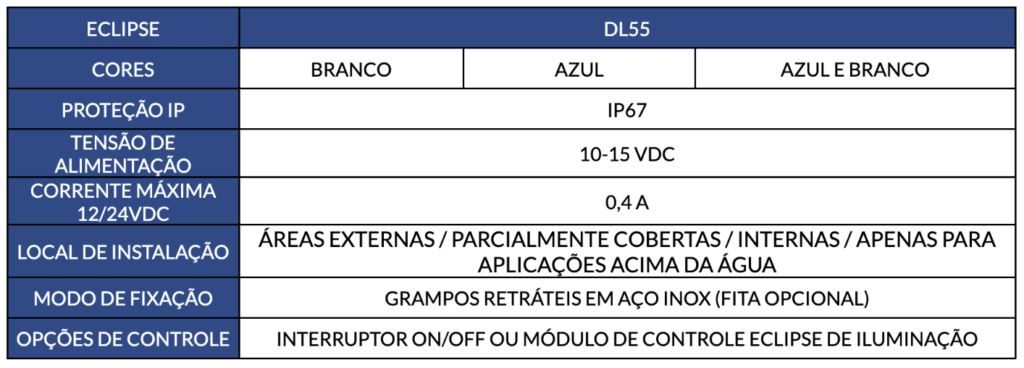 Ideal para quem procura iluminação simples e acessível, porém sofisticada e inteligente acima e abaixo da água (cor única e dupla). Este sistema de iluminação integrado é engenhosamente criado para embarcações menores, barcos esportivos, de console central e barcos de pesca com menos espaço. Criado com a mesma paixão, dedicação e garantia de confiabilidade Lumishore, o ECLIPSE é ideal para entusiastas da náutica em todos os lugares.