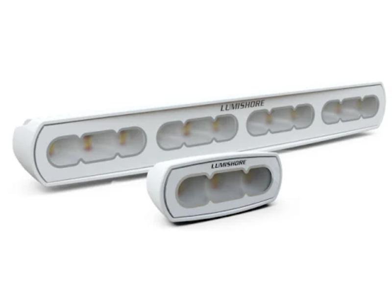 Perfeitos para iluminação do convés, cockpit ou para fins de segurança geral, os holofotes articulados e compactos da Lumishore são ideais para serem montados na parte externa do barco, seja no topo da cabine, capotas, popa e pedestais de radar.