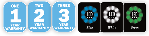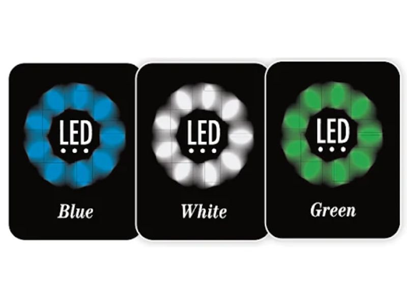 Duas luzes em uma única luminária de alta potência. Branco e azul funcionam a todo vapor sem sacrificar o brilho.
