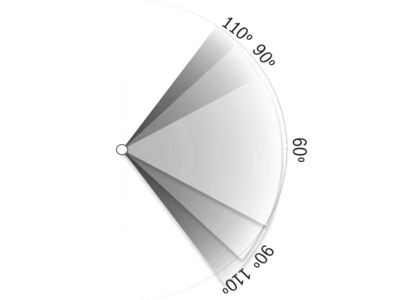 Atualmente com 3 opções: 60°, 90° e 110°.