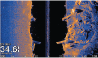 Imagens com mais definições tanto lateral ou pra baixo da estrutura da água, costões, troncos, etc — ajuda muito em pesca com estrutura ou árvores submersas.
